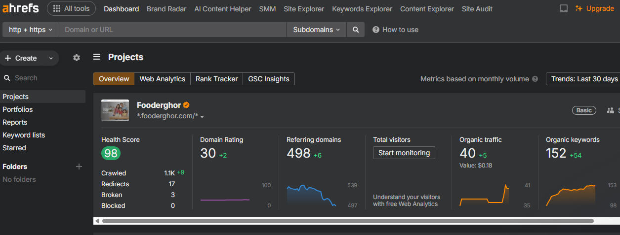 In this project, I focused on improving the overall SEO strength, authority, and visibility of the website using a combination of on-page SEO, technical improvements, and content-driven growth strategies. The progress was tracked using Ahrefs performance data.